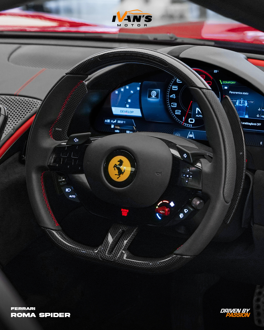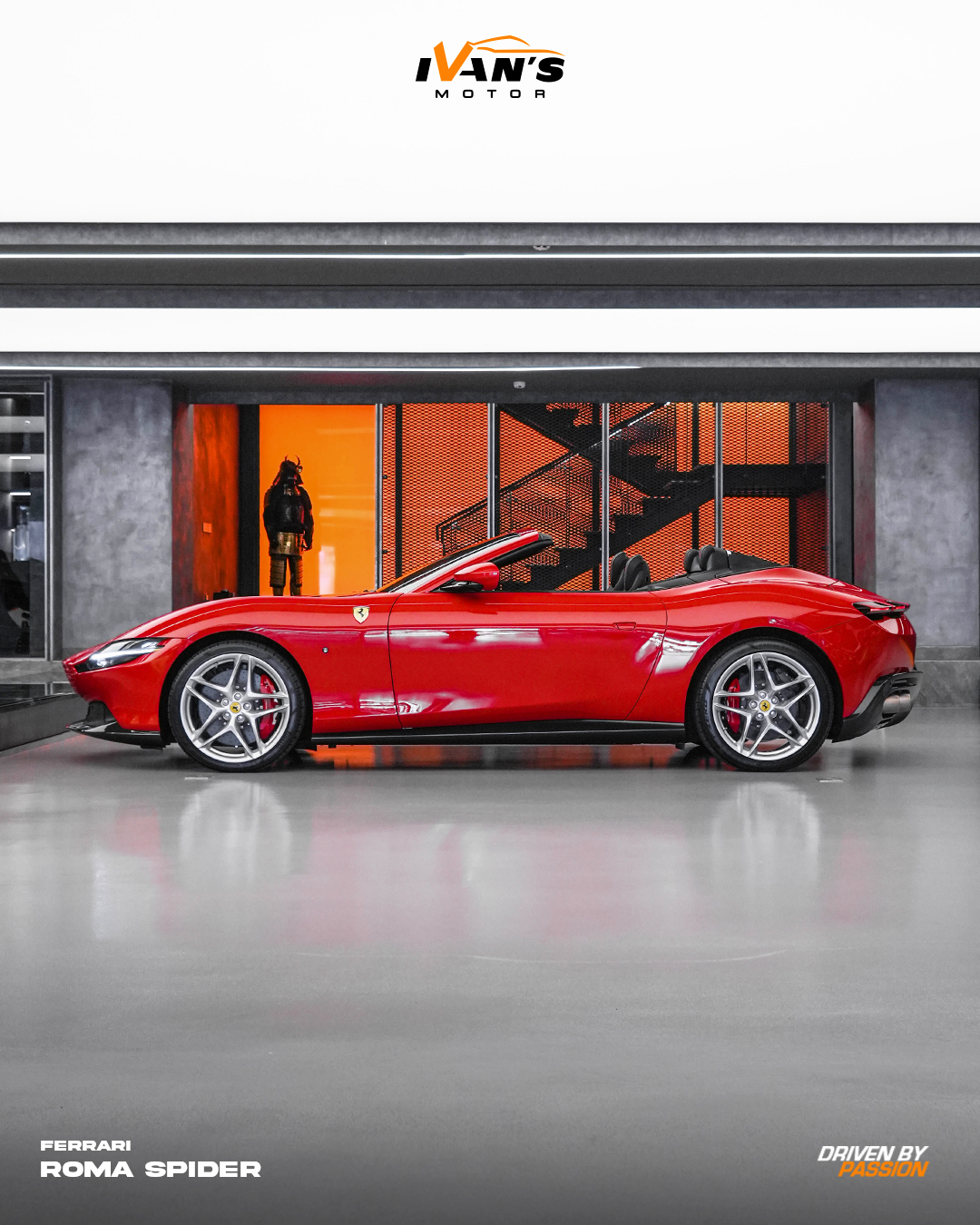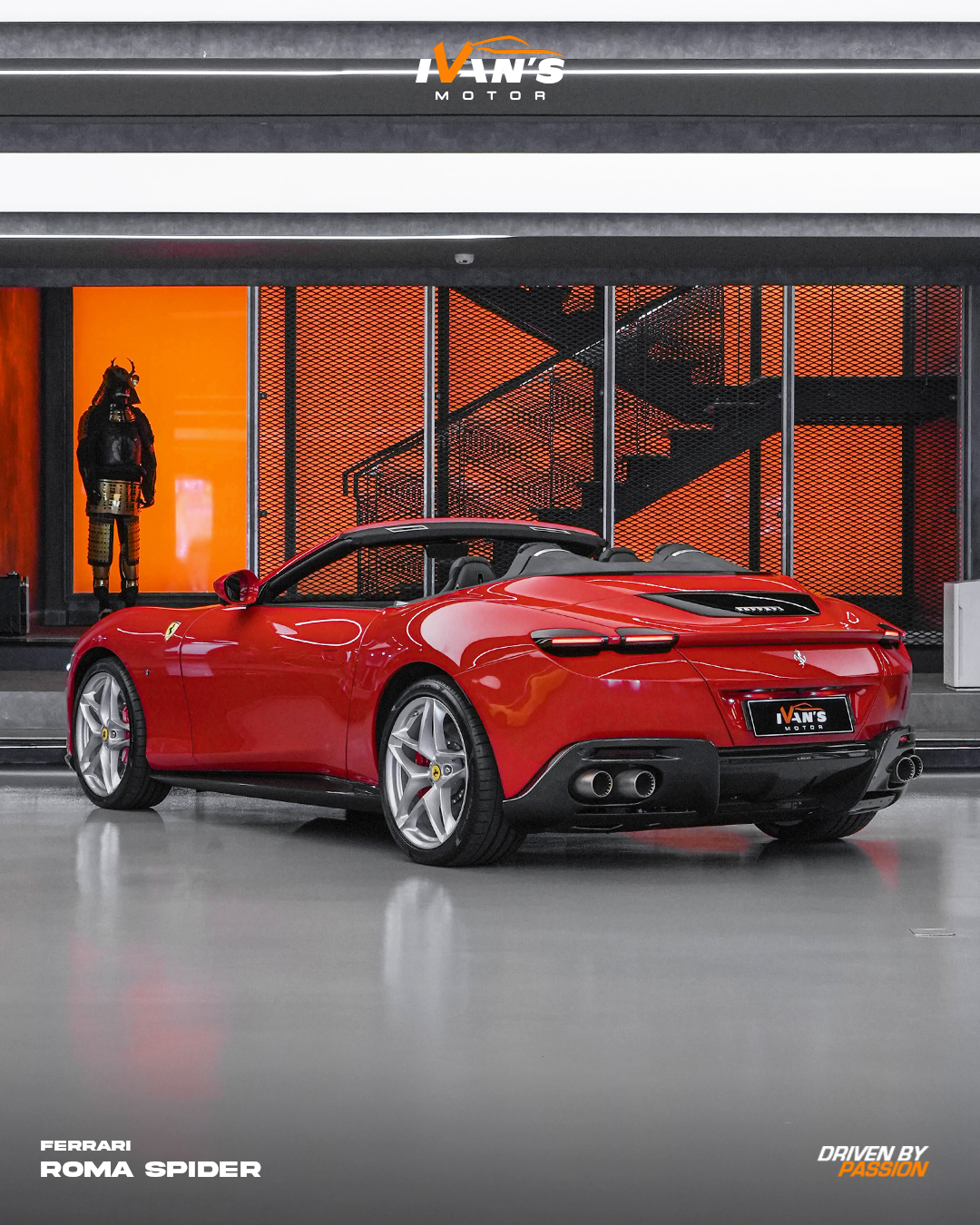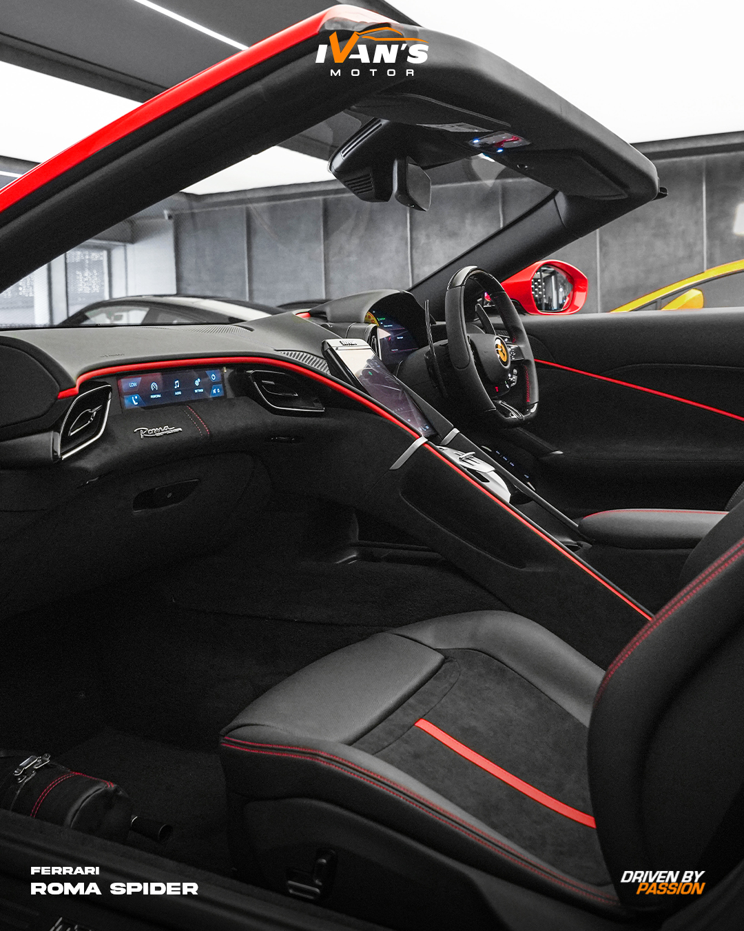 Modern Elegance, Open to the Sky. The Ferrari Roma Spider in Rosso Corsa captures Ferrariās modern spirit with effortless style. Powered by a twin-turbo V8 producing 456 kW and 760 Nm of torque, it delivers smooth, confident performance that feels just as good cruising as it does pushing on.